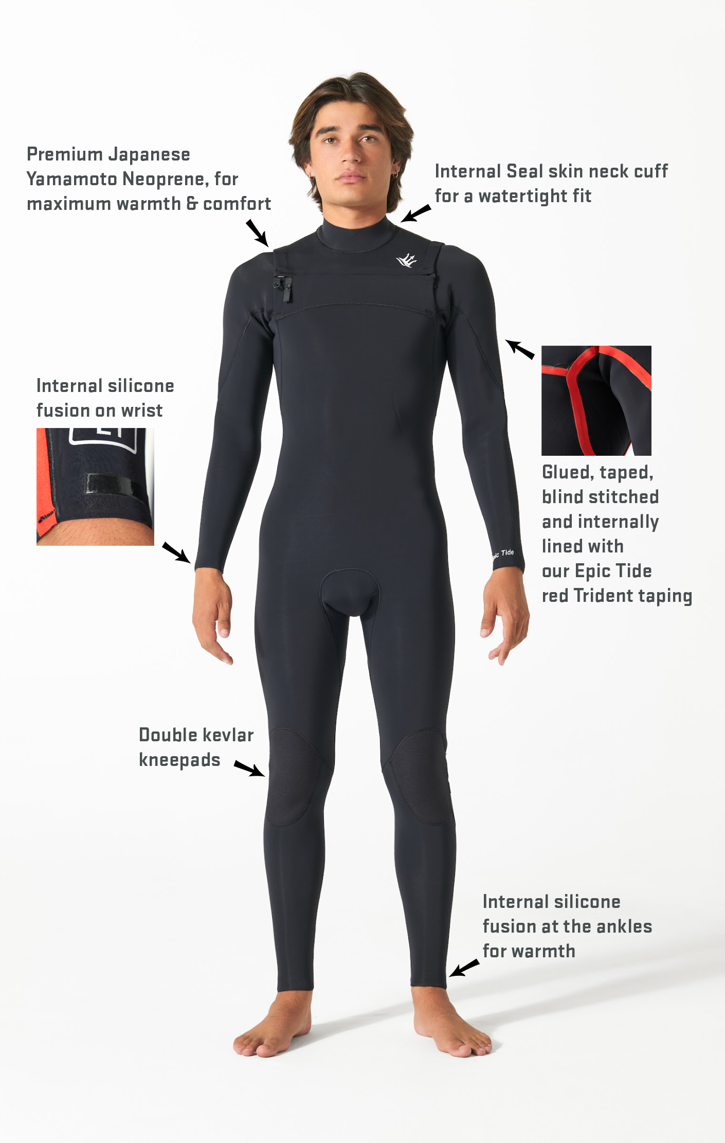 SILICON FUSION ON THE INNER WRISTS, and ANKLES, A NEW SMOOTH SKIN NECK CUFF FOR A WATERTIGHT SEAL AND KEVLAR KNEEPADS FOR DURABILITY.